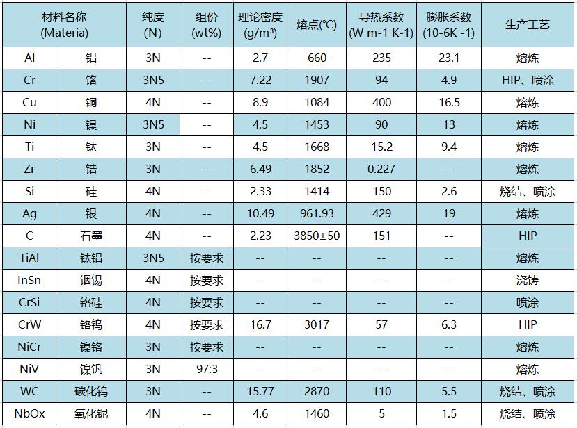 燦元在消費電子領域中主要提供以下靶材產品: