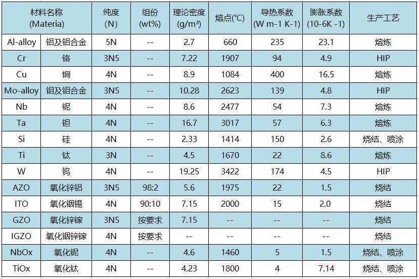 燦元在消費平板顯示領域中主要提供以下靶材產品: